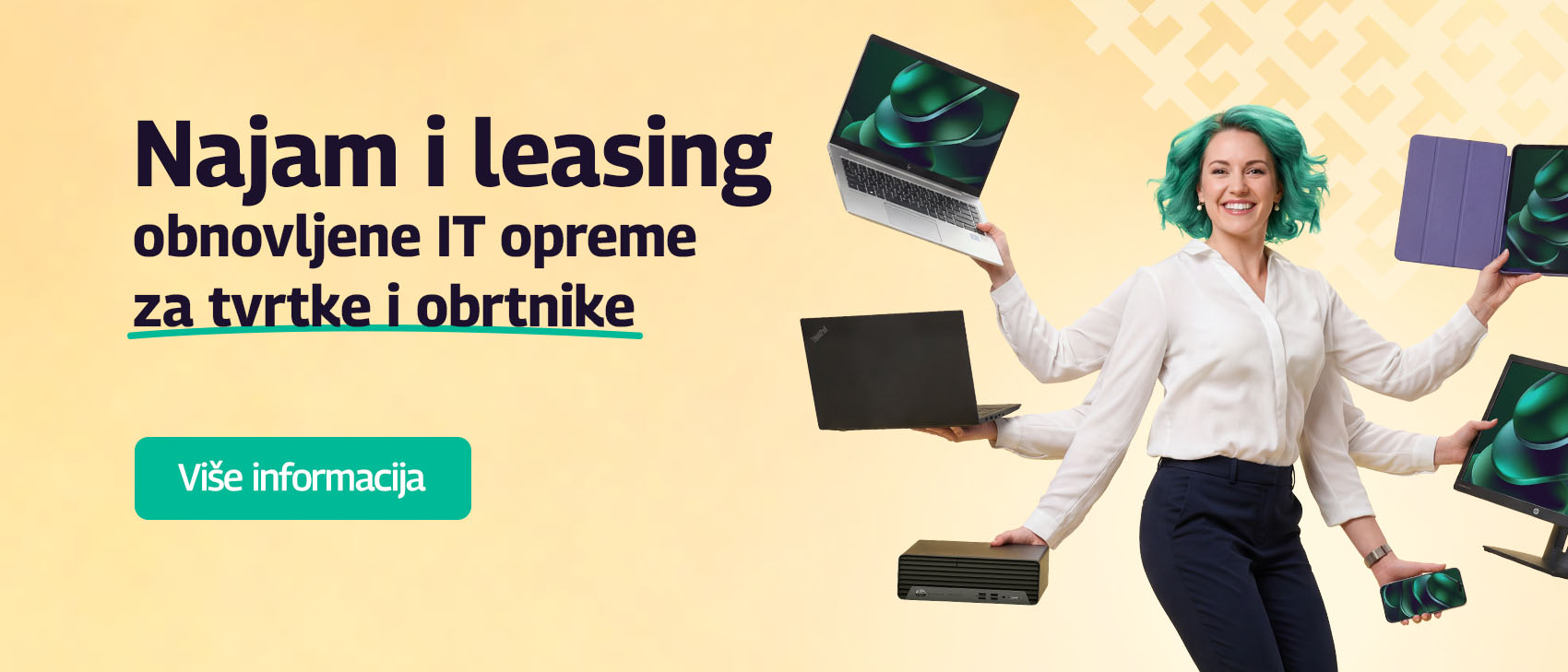 Imamo najveću mrežu prodajnih mjesta na tržištu. Rado ćemo vam pomoći i savjetovati vas u području obnovljene računalne opreme. Također, ovdje možete pogledati svoje proizvode, preuzeti ih ili riješiti reklamaciju.